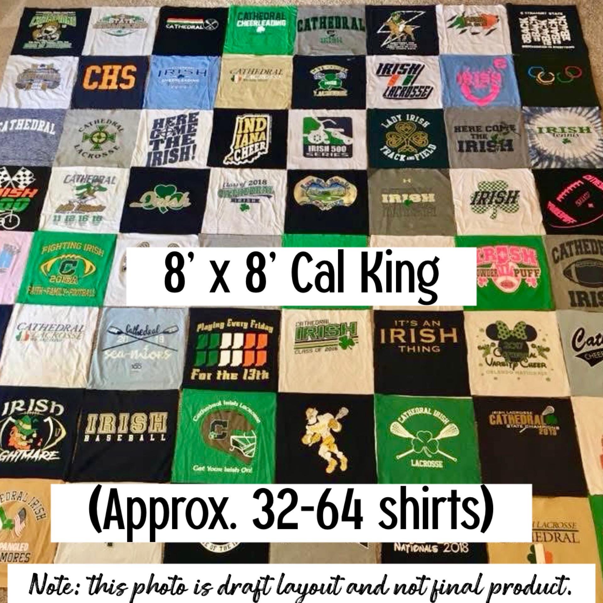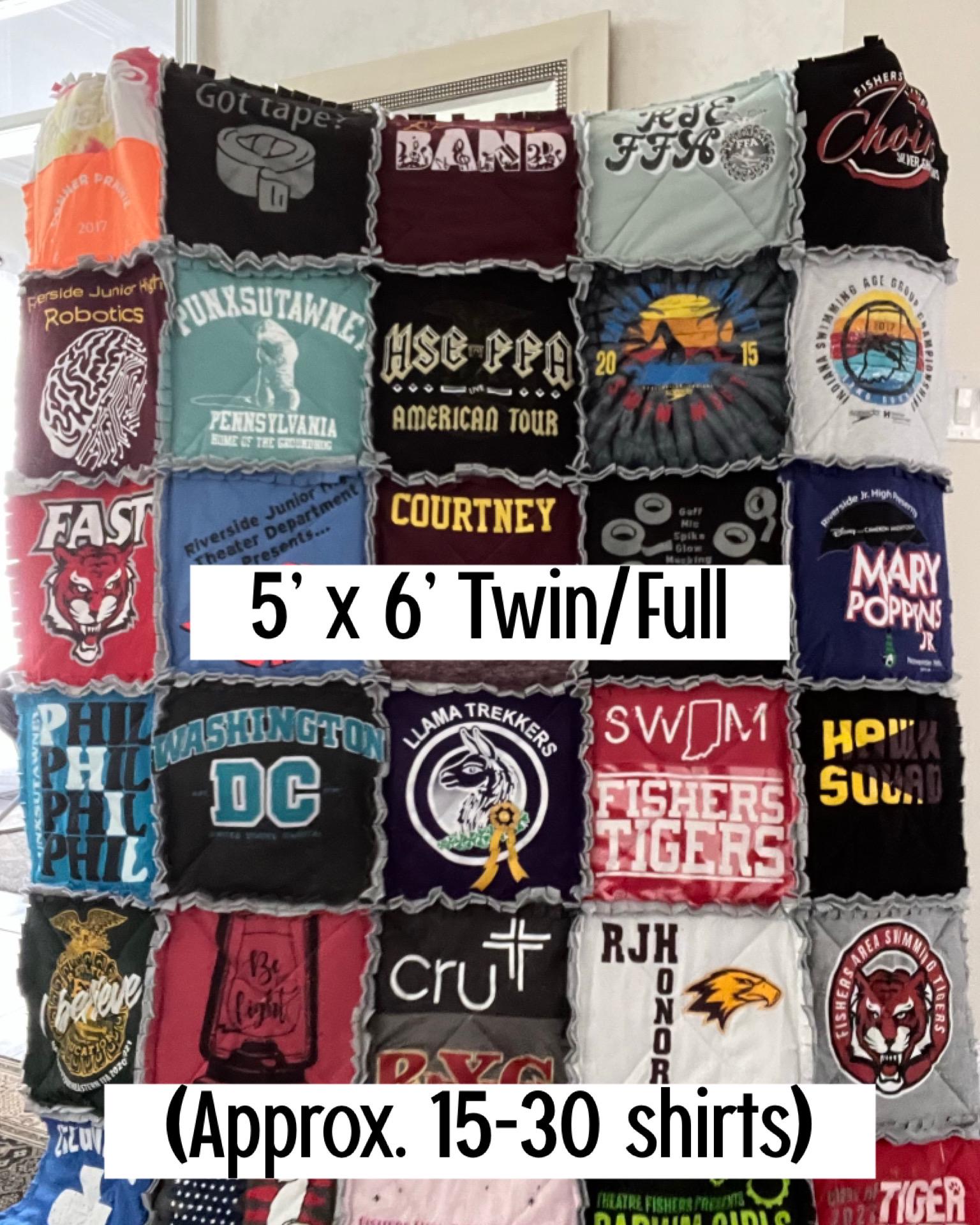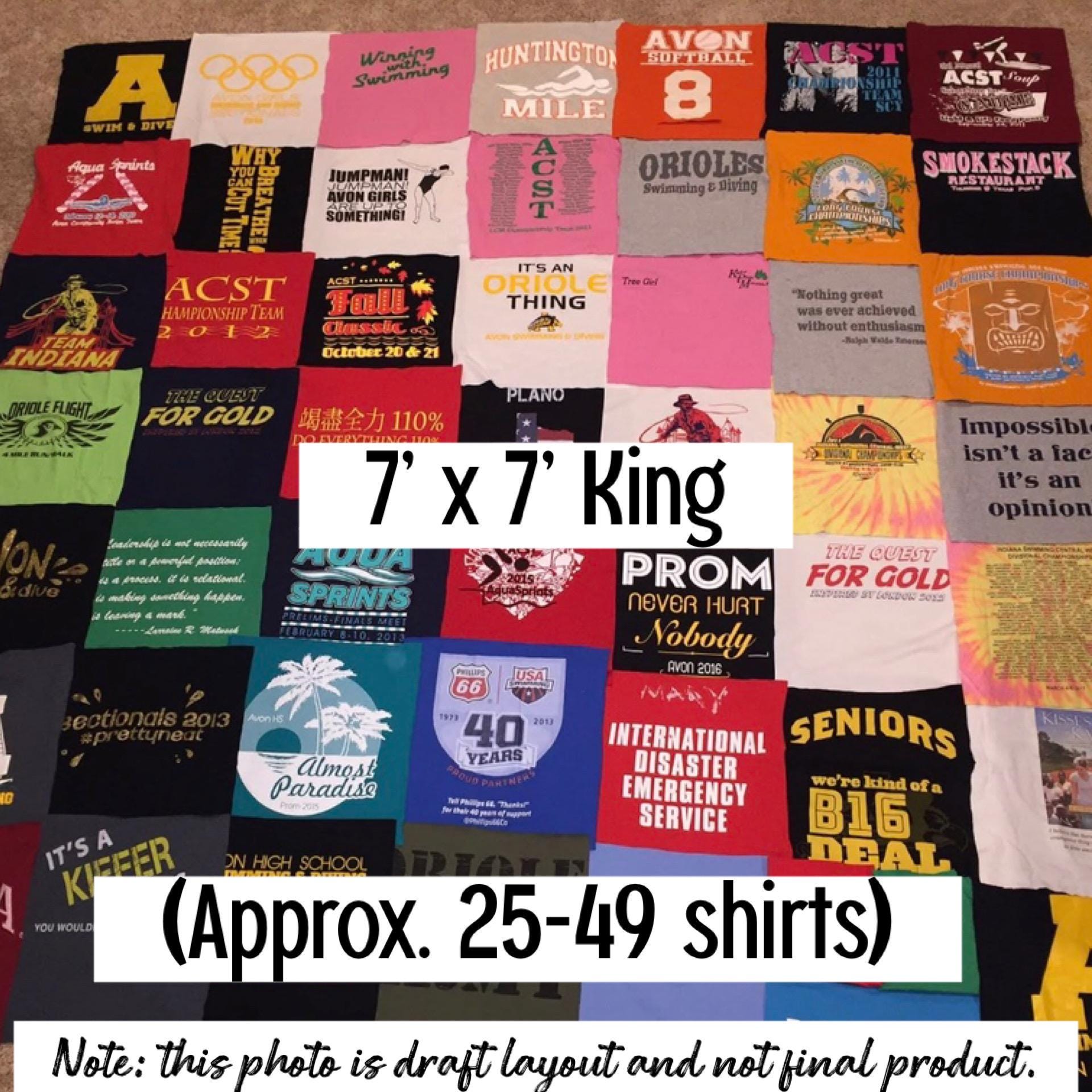 TYPES OF SHIRTS: The t-shirts can be cotton, dri-fit, athletic, jerseys, and sweatshirts too. Send me all the shirts you want to incorporate into the blanket. The number of shirts doesn't need to exactly match one of the sizes shown as I can combine shirts and/or use both front and back sides of the shirt to include them all. 😊