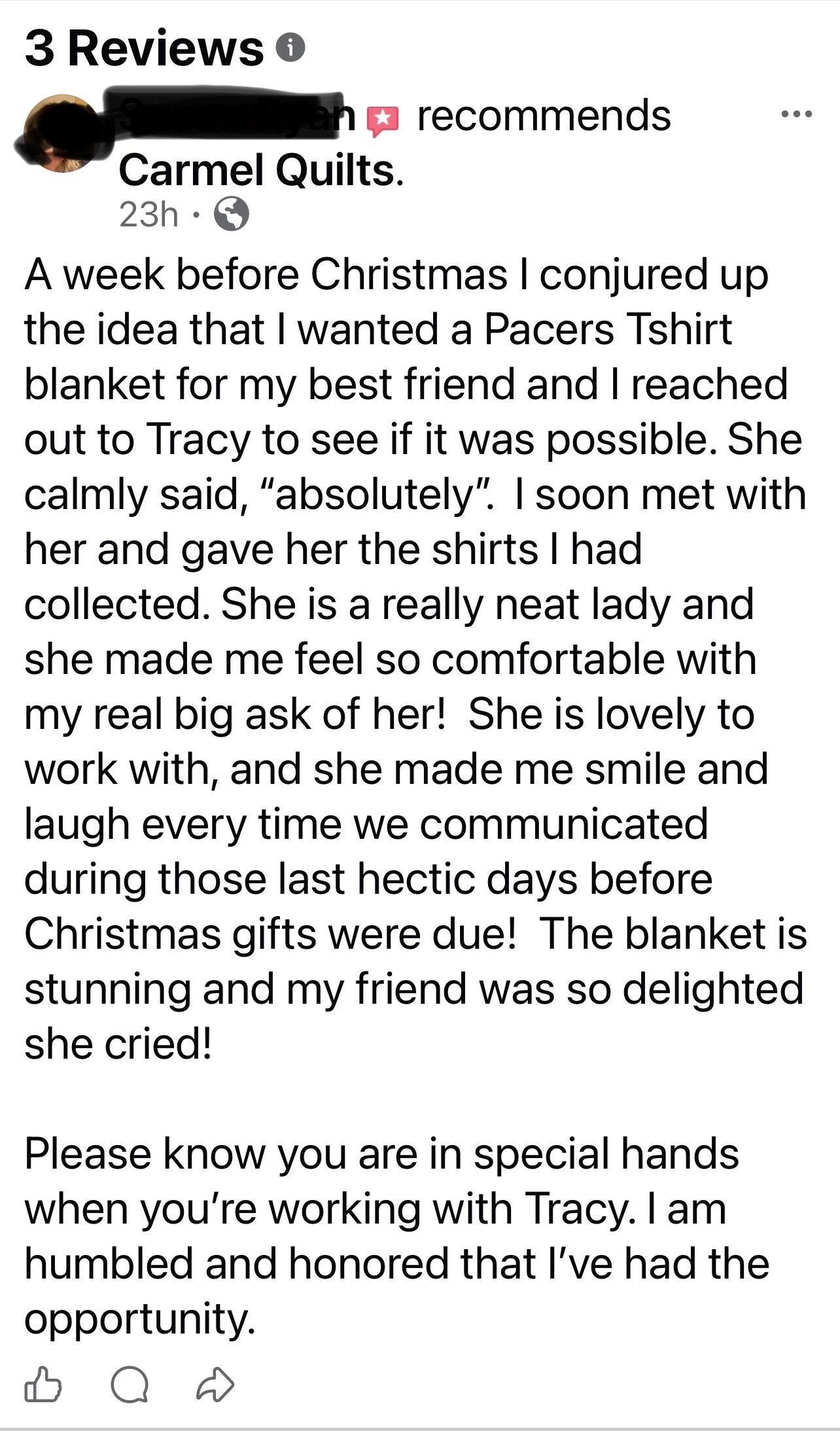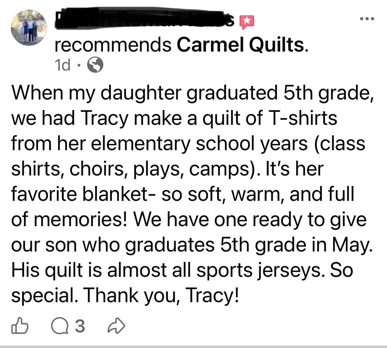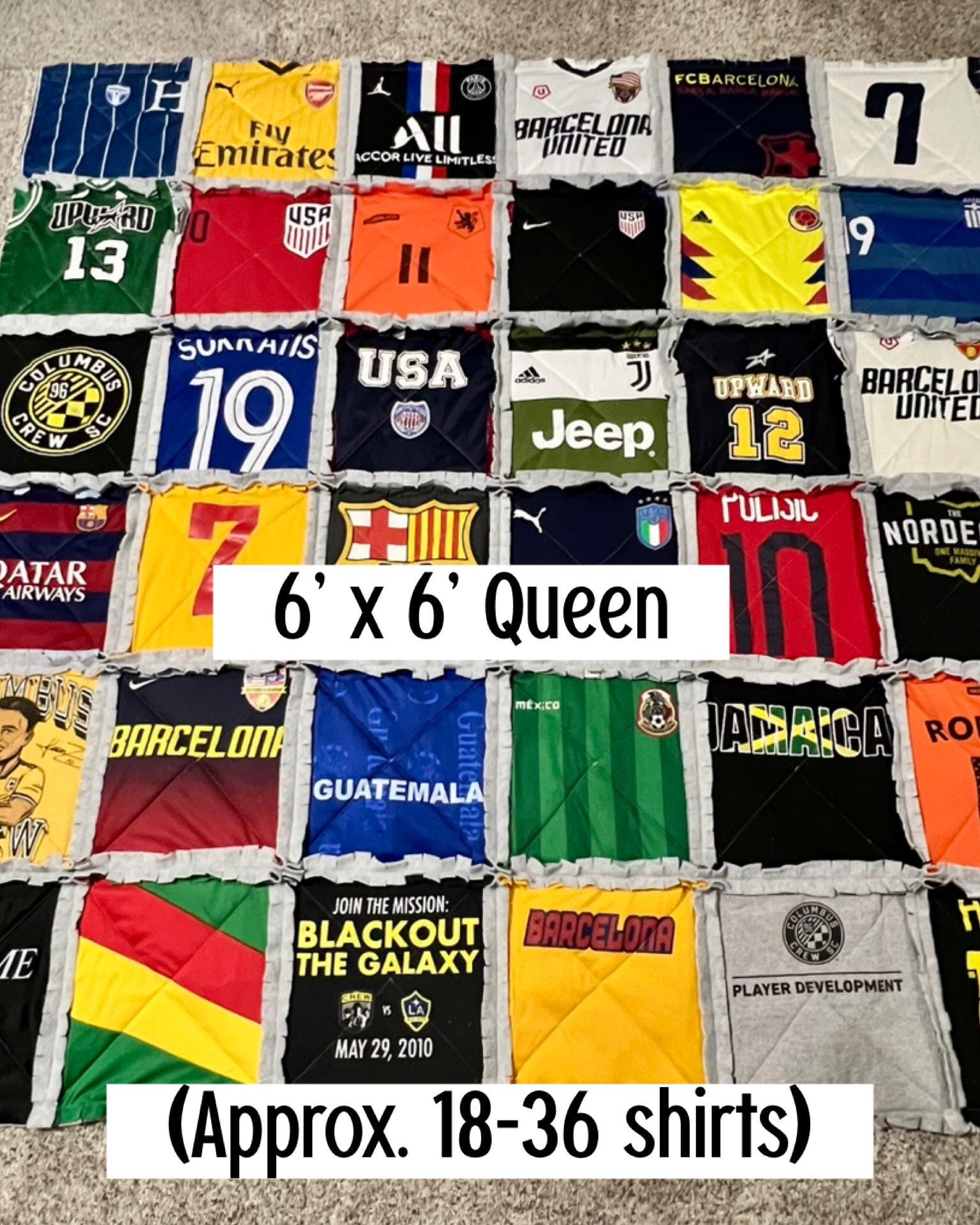 TYPES OF SHIRTS: The t-shirts can be cotton, dri-fit, athletic, jerseys, and sweatshirts too. Send me all the shirts you want to incorporate into the blanket. The number of shirts doesn't need to exactly match one of the sizes shown as I can combine shirts and/or use both front and back sides of the shirt to include them all. 😊