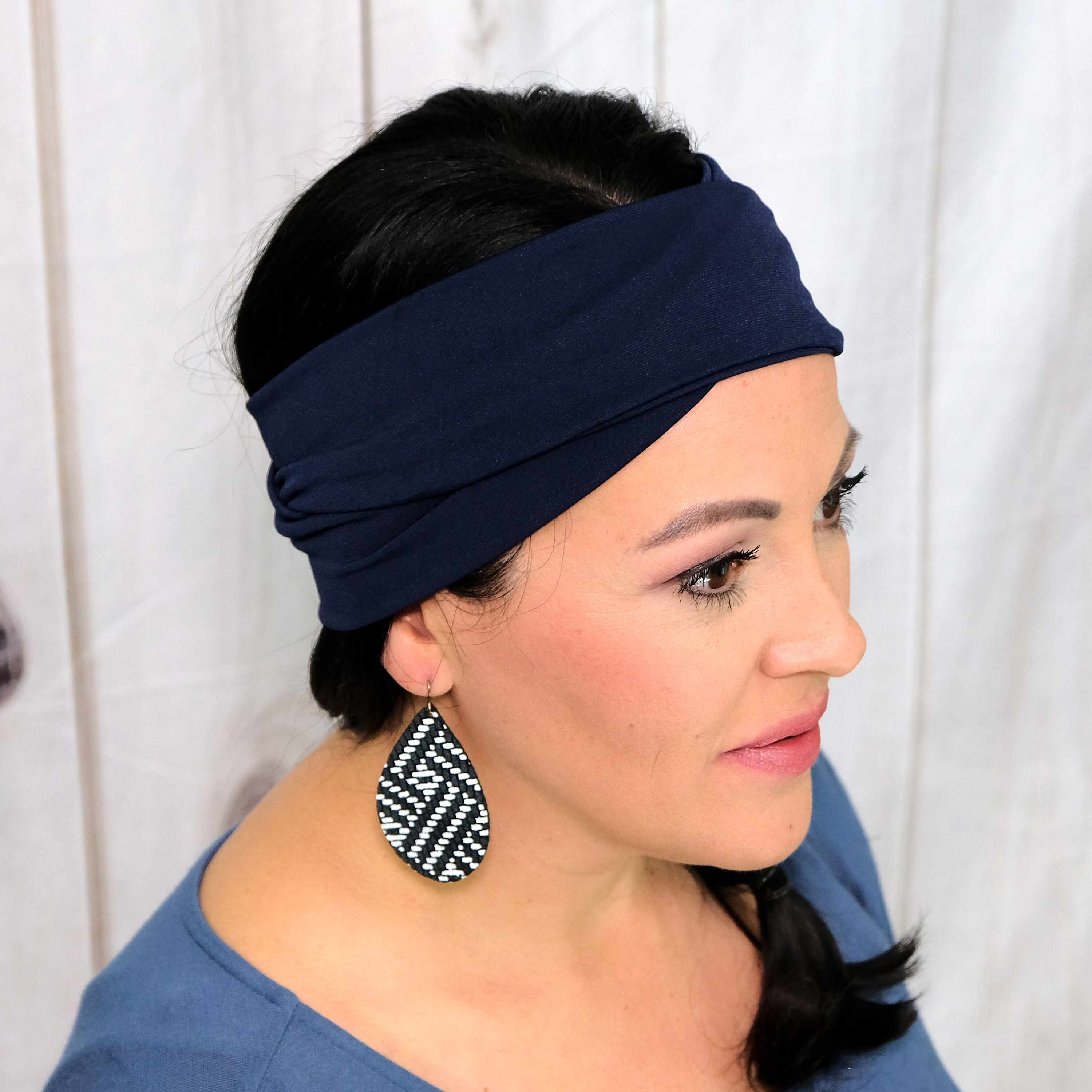 The Fashion Twisted Turban headbands will be your messy bun’s new BFF and your newest favorite headband for fun and fashion. These fashion headbands are made with a more relaxed knit fabric for when you conquer your less intense tasks and workouts. Whether you want to dress up your messy bun or tame those fly-a-ways, we’ve got you covered with our limited edition Solid Navy Blue headband.